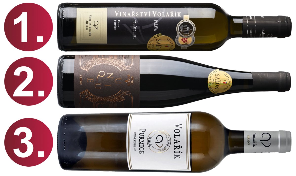 Filip Mlýnek si zopakoval prestižní souboj s Volaříkem z minulého roku, tentokrát z něj ale odchází poražen. Především proto, že nad 90 bodů se nakonec dostal jenom vlašák z Liščího vrchu 2022 (mimochodem figuroval i minulý rok ve vítězné sestavě) a zbytek skončil pod 89. I tak jde ale o silnou sestavu, ve které hrají pochopitelně prim tři Ryzlinky vlašské. Poprvé se u něj ale prosadilo i červené.