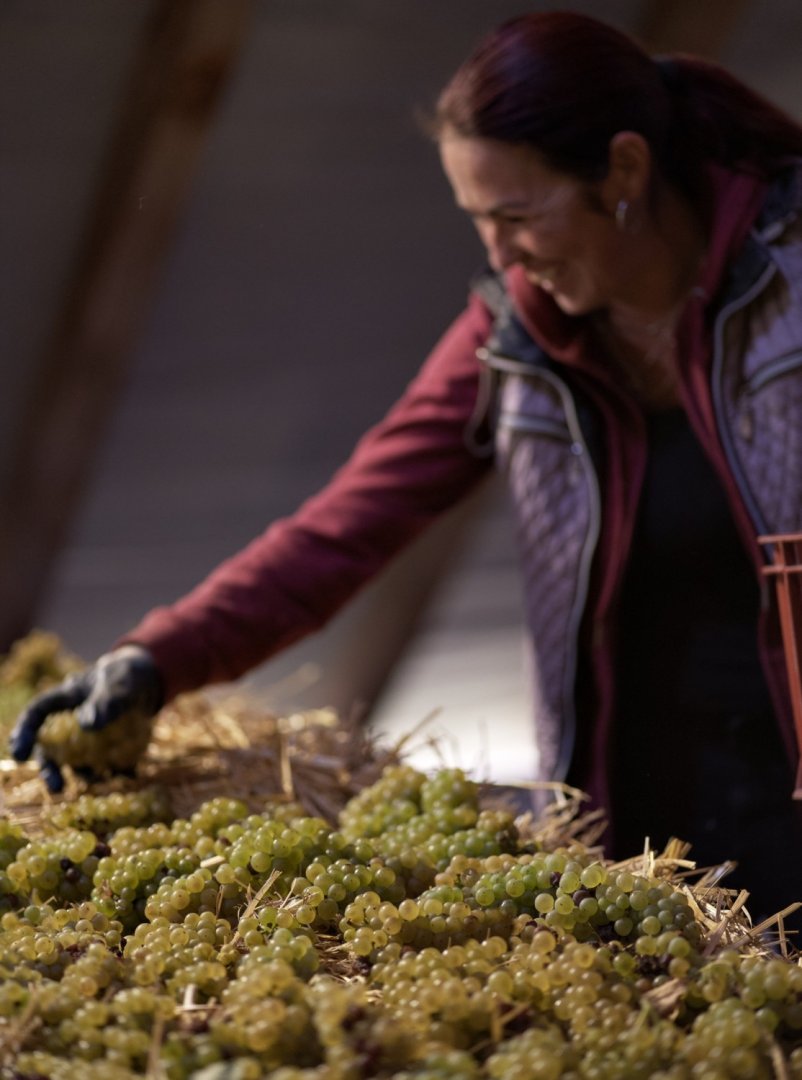 Letošní vinobraní bylo jako symfonický koncert. Vše krásně odsýpalo, jak jsme později začali, tak jsme brzy skončili. Zpočátku nebyla cukernatost ani vyzrálost nijak úchvatná, ovšem září mělo fantastickou moc a vše se rychle dohnalo. Nádherně zralé a zdravé hrozny s vysokou cukernatostí a fenolickou zralostí, kyseliny taky pěkné. Bílá vína jsou extraktivní a červená krásně „vypečená". Společným rysem je velký podíl cibéb u všech vín, to znamená koncentrovanější zážitek. 16. října proběhl poslední sběr, teď už máme ve vinici jen hrozny na ledové víno a modlíme se, aby vše vyšlo a brzy zamrzlo. Letos opravdu nebylo na co čekat.