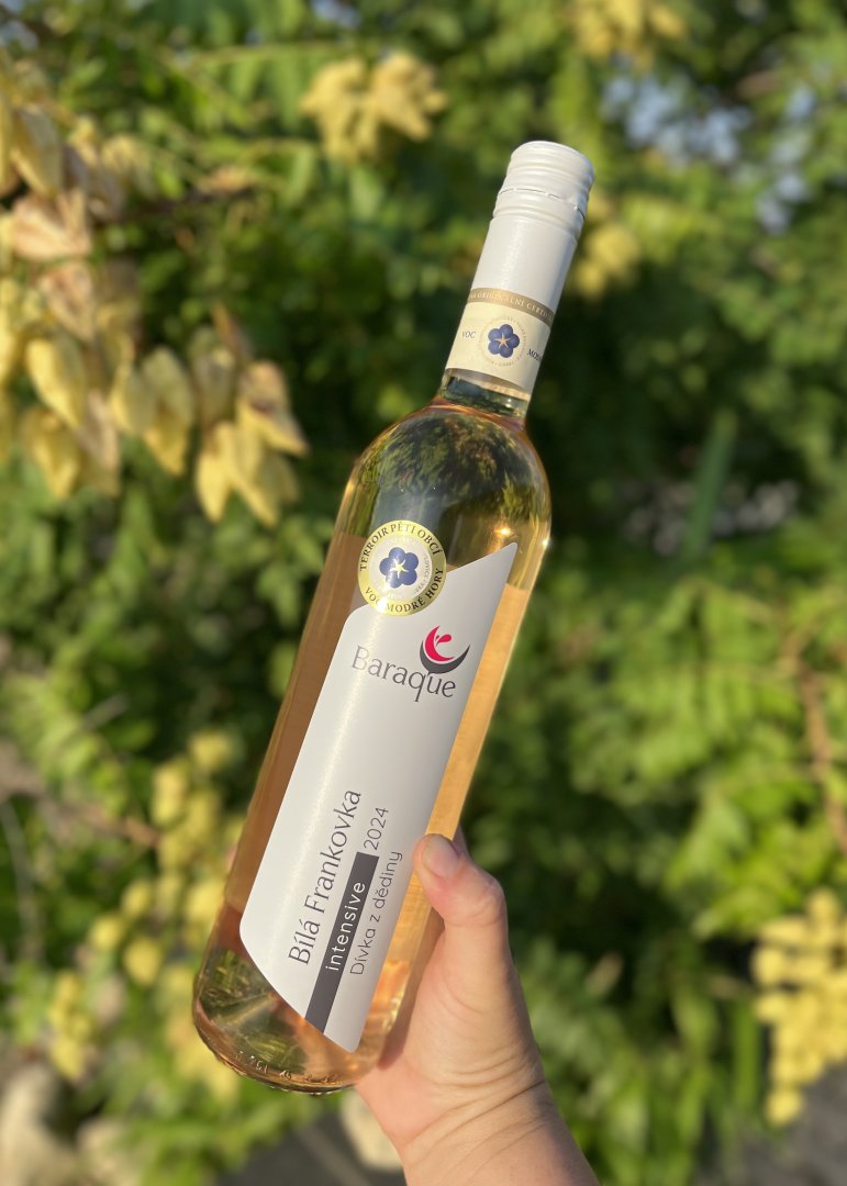 Ružové a klaret Ružové a klaretNižší síra Nižší síraRužové a klaret Ružové a klaretNižší síra Nižší síračíst dáleOsobnost vína: Dívka z dědinyBílá Frankovka je jako slečna, která se večer oblékne do trendy oblečení, namaluje si měděnou linku kolem očí a k večeři si poručí špagety carbonara kořeněné bílým pepřem. Při delším hovoru ale poznáte, že je to holka z dědiny - stejně jako její babička si v humně pěstuje meruňky na zavaření, bělomasé broskve i angrešt, v rohu nechává pár kopřiv, které si suší na čaj. Přirozeně v sobě snoubí moderní a tradiční životní styl a právě to ji činí překvapivě zábavnou.číst dáleCharakteristika vínaJiskrně čiré víno bílé barvy s přiznaným měděným podtónem, zatřízené jako klaret z Frankovky z VOC Modré hory. Aroma se chlubí ovocnými tóny angreštu, bělomasou broskví a kompotovanými meruňkami, které se spojují s tóny kopřivy a bílého pepře. Víno je suché s příjemnou dochutí a nenápadnou tříslovinou, která příjemně doznívá v dochuti.220 Kčhttps://mojelahve.sk/eshopy/vina-moravy-a-cech/Vytvořeno pomocí vinokalorie.czVinařství BaraqueBílá Frankovka VOC Modré hory 2024, voc, šarže 2432Výživové údaje100 ml výrobku obsahuje:Energie308 kJ / 74 kcalAlkohol10 gSacharidy1,1 gZ toho cukry0,3 gOrganické kyseliny0,6 gObsahuje zanedbatelné množství:bílkoviny, tuky, nasycené tuky, sůlSložení: Konzervanty a antioxidanty (Oxid siřičitý), Víno, Konzervanty a antioxidanty (Dimethyldikarbonát (DMDC))