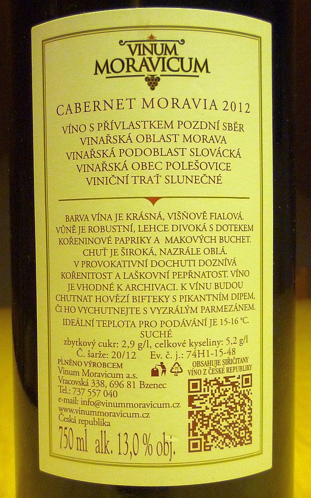 Cabernet Moravia 2012, Vinum Moravicum