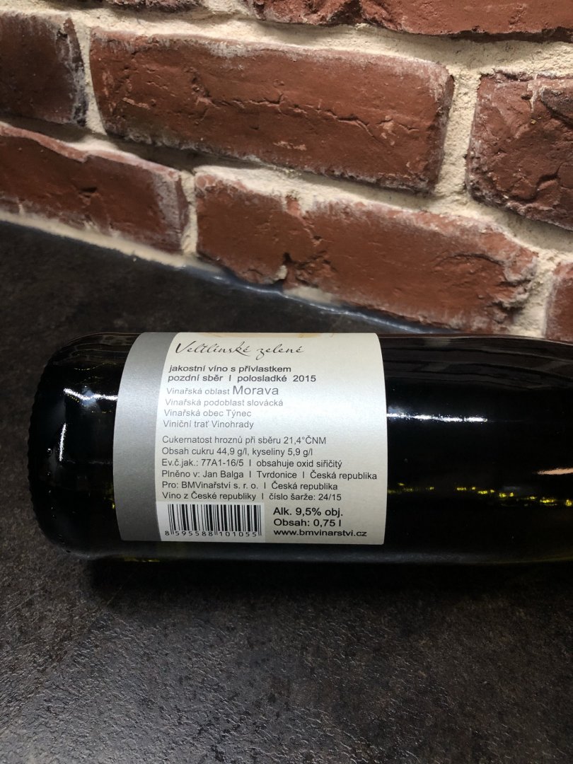 Veltlínské zelené 2015, BM Vinařství